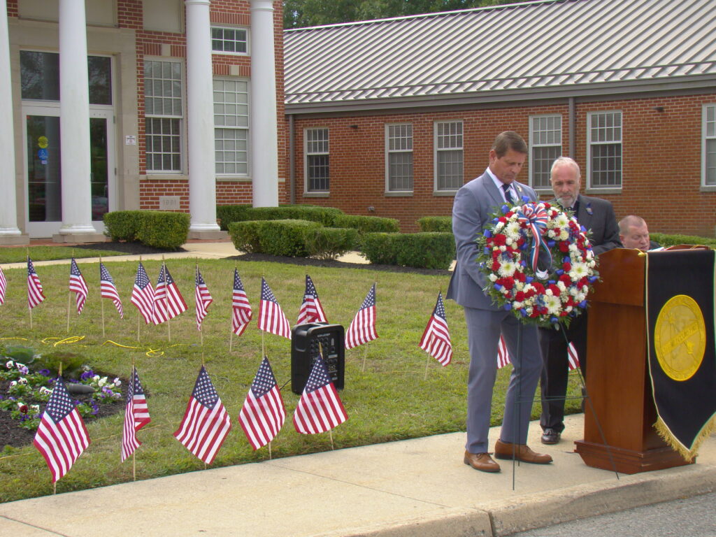 Desiderio began his remarks by mentioning Andrew Alameno, a Wildwood Crest native who at 37 died in the attack on the World Trade Center in New York, Cape May County’s only victim of the attacks. He went on to mention the first responders, who he said ran toward danger that day in an attempt to rescue people from the damaged, then collapsing towers, at the Pentagon and those aboard Flight 93, which crashed in Shanksville, Pennsylvania. He also mentioned that nearly 3,000 people lost their lives at the three locations.