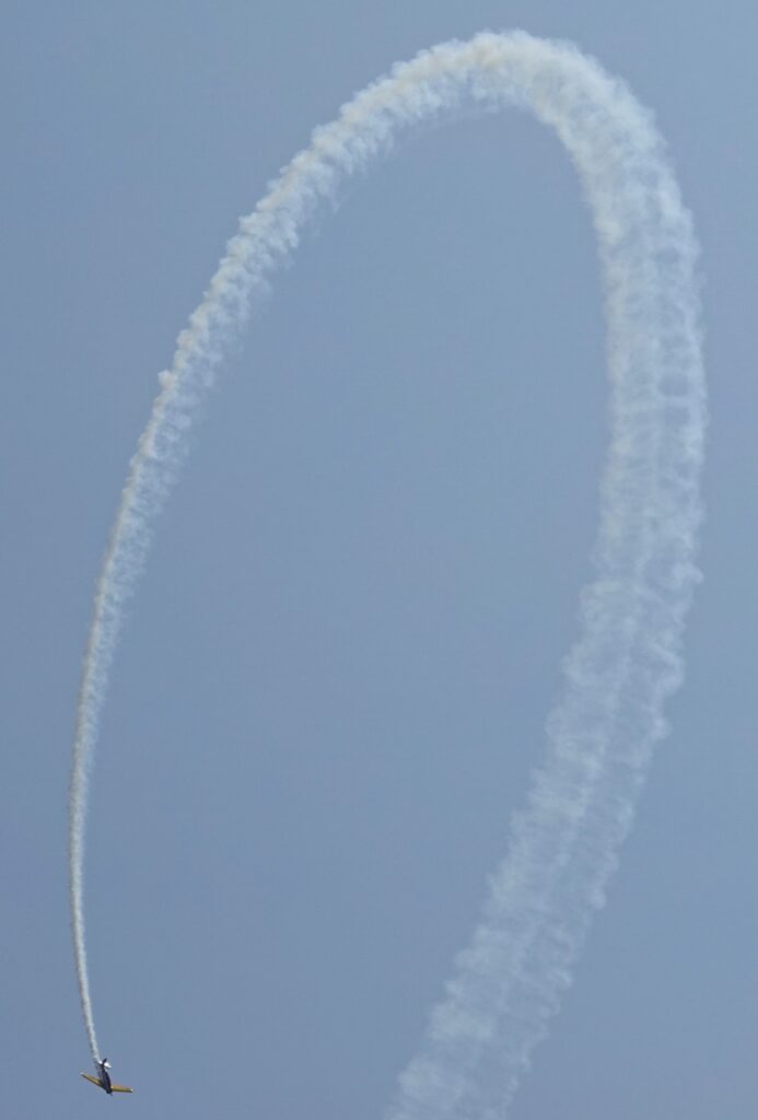 The aerobatic flights were accented by smoke trails that helped illustrate how precisely the pilots’ maneuvers were, whether forming a loop or performing a classic barrel roll. The show included a number of low-level passes that allowed viewers a better appreciation of the speed of the aircraft, which included a former Soviet MiG-17 jet.