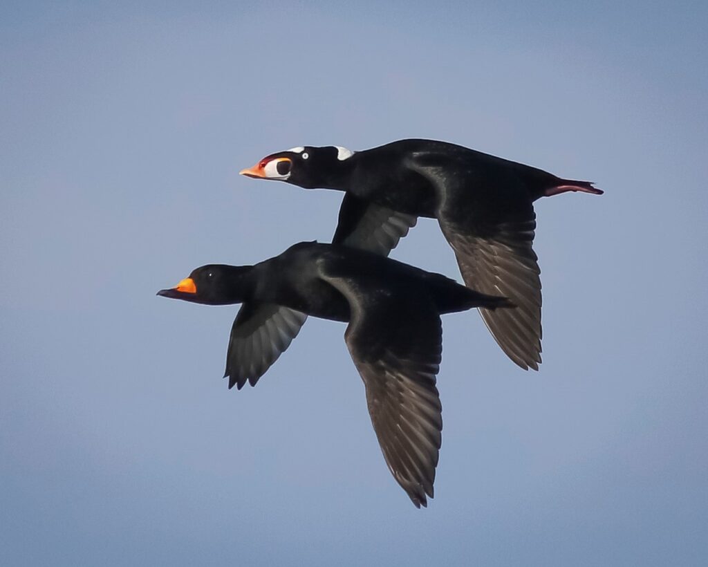 The top 5 species counted pass by in amazing numbers: Black Scoter, Surf Scoter, Double-crested Cormorant, Red-throated Loon and Northern Gannet. Black Scoters are the most common bird counted each year, averaging over 300,000, with some single days topping 50,000. It often travels with its close cousin, the Surf Scoter, which averages over 135,000. Both of these sea duck species are also common throughout the winter; look for the coloration of the bill and head to help tell these species apart.