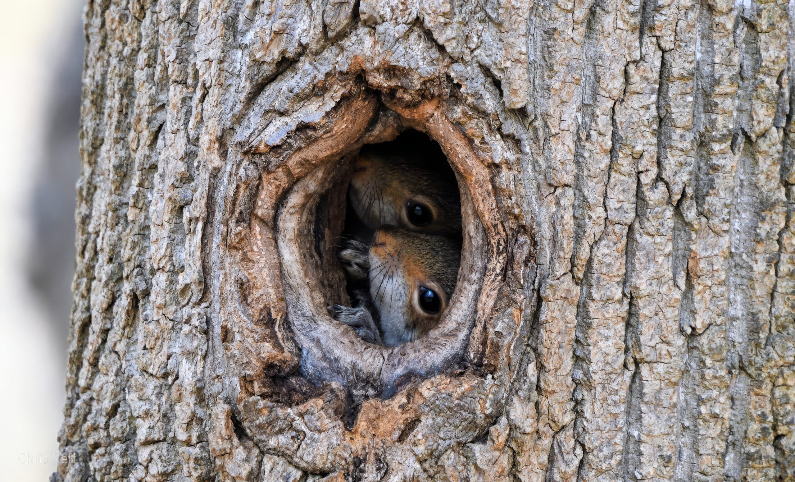 Just as important as keeping warm is keeping fed. In late summer and fall, squirrels stash away hundreds or even thousands of nuts throughout their home range, which can span several acres. While some squirrel species hoard large supplies in a single spot, Eastern Gray Squirrels practice what’s called scatter hoarding—hiding smaller amounts of food in many different locations. Most of us have witnessed this frantic burying of acorns that looks chaotic, but it’s actually a clever survival strategy. By spreading out their caches, squirrels make it harder for would-be thieves—like blue jays and rival squirrels—to steal their stores.