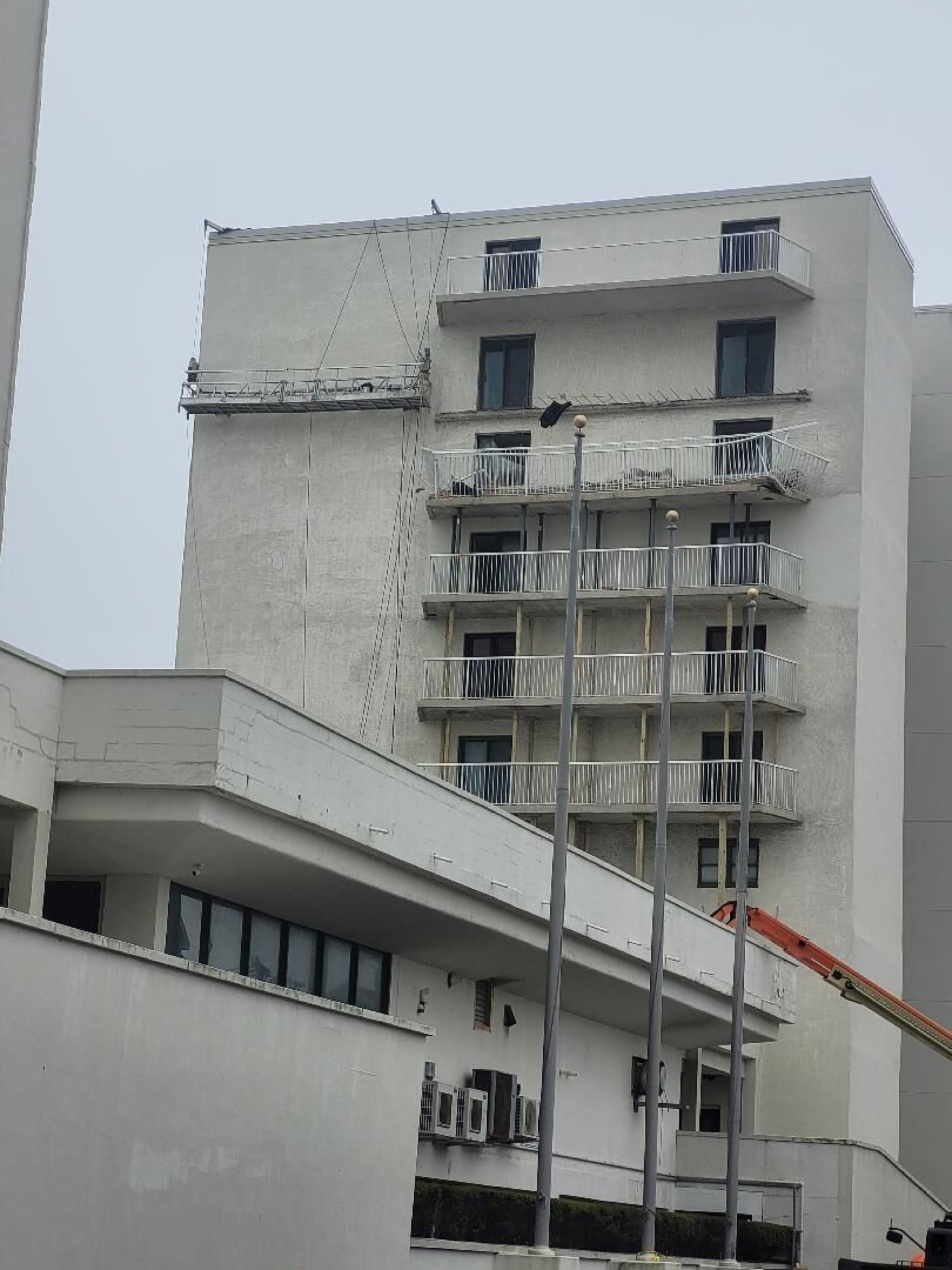 Shown is the south tower of the Spinnaker Condominium Complex, where a balcony collapse took the life of a construction worker, Feb. 24.