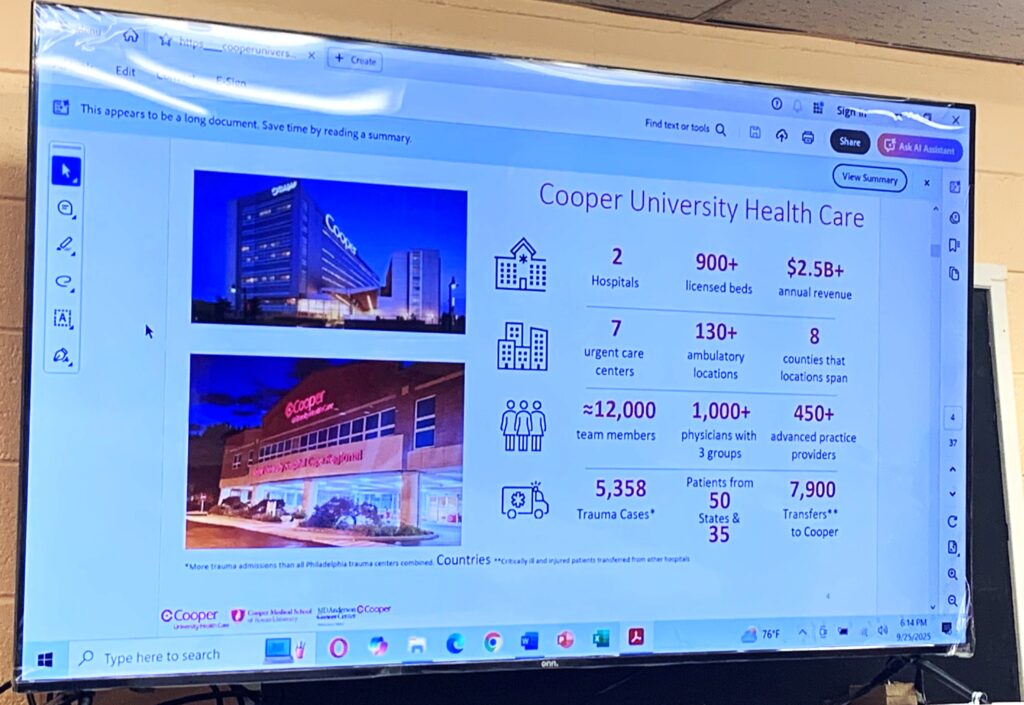 A slide from a presentation at Tabernacle United Methodist Church on the Cooper University Hospital system.