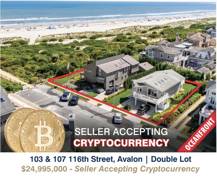 Two homes on the market in Avalon and Stone Harbor have agreed to accept cryptocurrency as payment. The owners of the homes are asking in the neighborhood of $25 million.