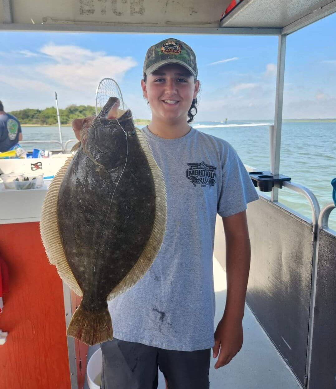 They used Chris as evidence after she stopped in to have her flounder weighed. It topped out at 4 pounds and measured 24 inches in length.