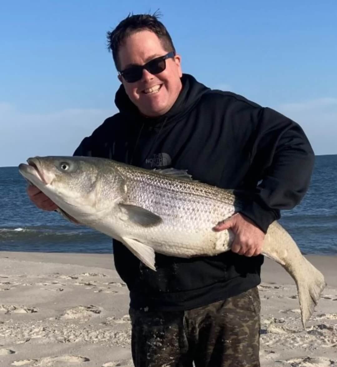 Thanks go out to Valerie Bowers for sending in a picture of her brother Rick Cushman who landed, then released, a 44-inch striper from a spot along the Cape May beach. Clam was the bait that the striper couldn’t resist. Thank you for submitting the picture and report, and keep following our column.