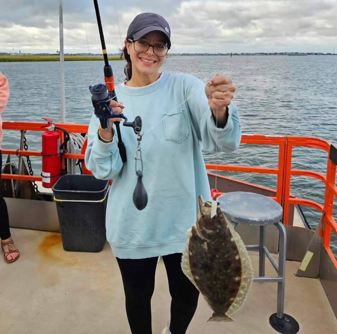 An angler with a keeper flounder caught on one of the final days of the flounder season.