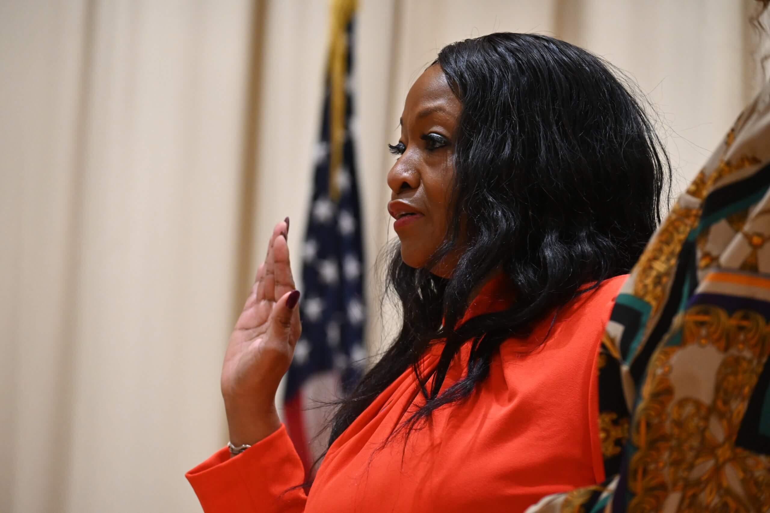 Former Middle Township Mayor Timothy Donohue administered her oath of office.