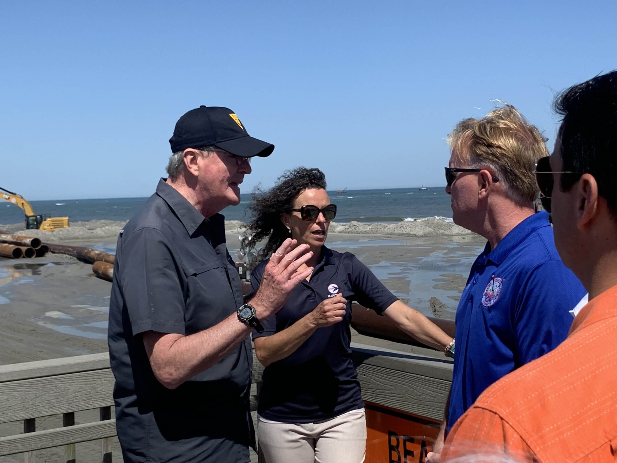 Genevieve Clifton of the state Department of Transportation’s Office of Maritime Resources briefed the governor on what is being done. Pointing south from 7th Avenue, she told Murphy the beach fill would also go south, nearly to the first amusement pier in Wildwood, and that it would protect the shore as well as the economy.