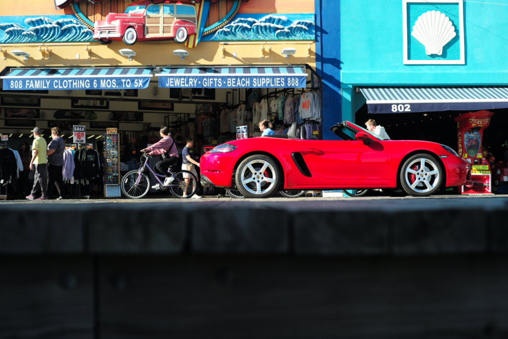A current-generation Porsche Boxster on the boardwalk. Thankfully, there has been no rain during the five years of the Porsche Boardwalk Reunion.