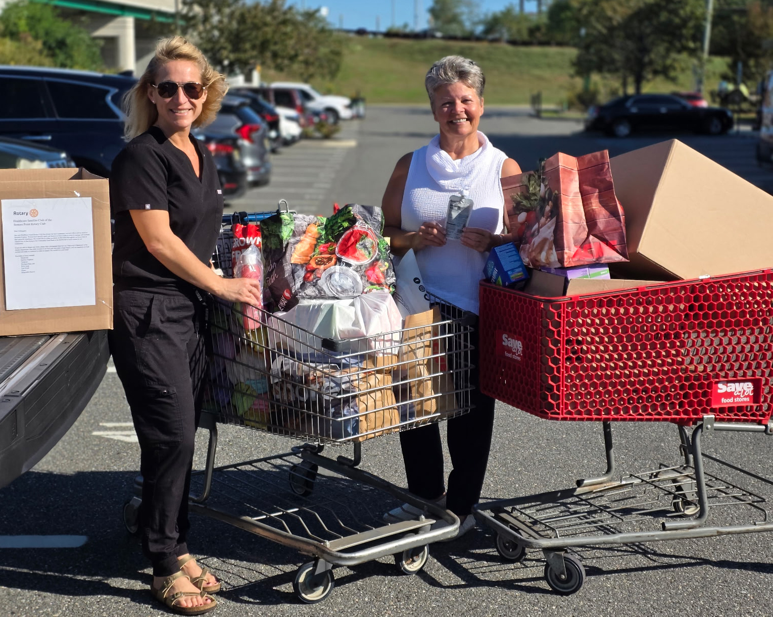 Sallie Godfrey with the Ocean City – Upper Township Rotary Club saw a need and led the collection campaign. She partnered with Kelly Willman, president of the Somers Point Rotary Club, whose club also made a sizable donation of baby food. In addition, the new Satellite Healthcare Rotary Club at AtlantiCare in Atlantic City collected feminine hygiene products and baby food for the FoodBank.