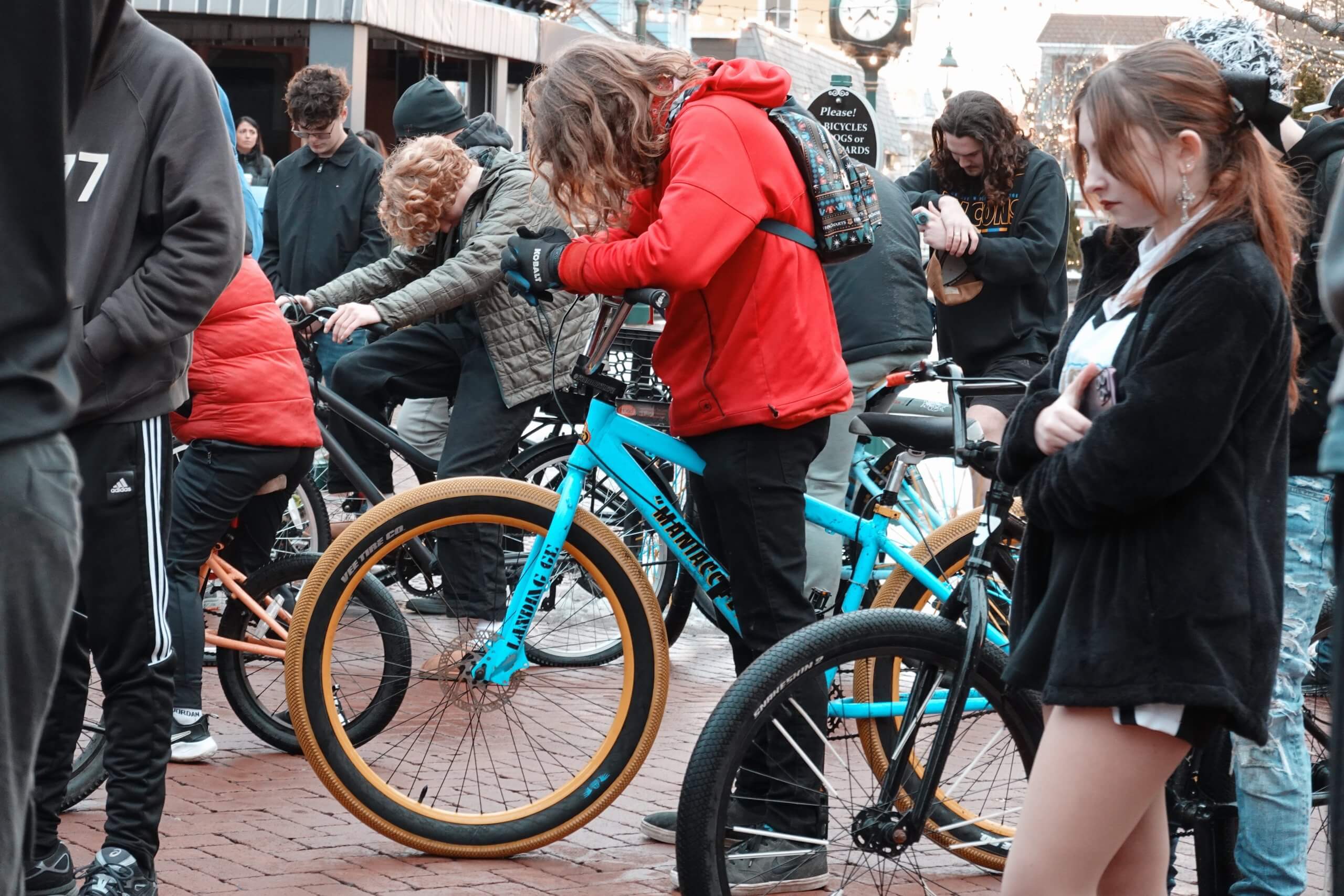 Bikers pedaled for several miles, often flashing tricks like wheelies and jumps, in Schofield’s memory. Photo credit: Collin Hall
