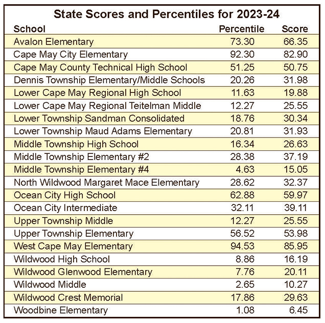 *The state Department of Education has released its latest ratings for every public school in New Jersey except those that only have grades pre-K to 2, and the results for Cape May County overall were not good.